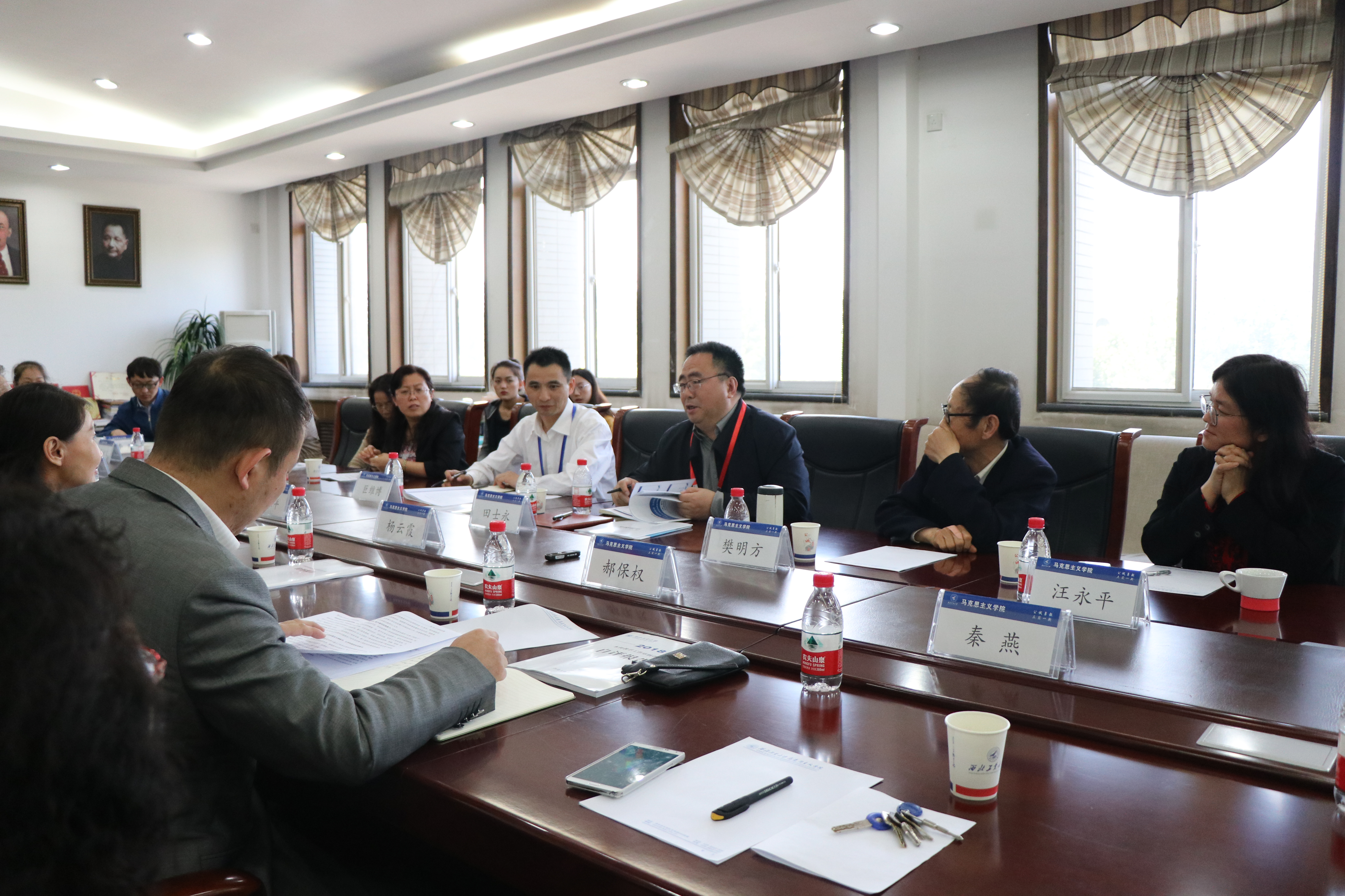 。学院党委书记鲁卫平、院长杨云霞,党委副书记袁源、副院长郝保权及部分教授、博导和各系负责教师参加了此次专家走访座谈会。