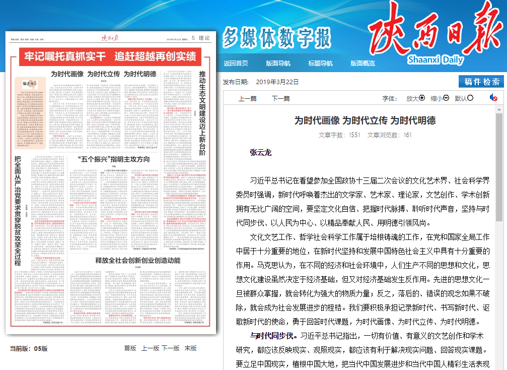 习近平总书记在看望参加全国政协十三届二次会议的文化艺术界、社会科学界委员时强调,新时代呼唤着杰出的文学家、艺术家、理论家,文艺创作、学术创新拥有无比广阔的空间,要坚定文化自信、把握时代脉搏、聆听时代声音,坚持与时代同步伐、以人民为中心、以精品奉献人民、用明德引领风尚。