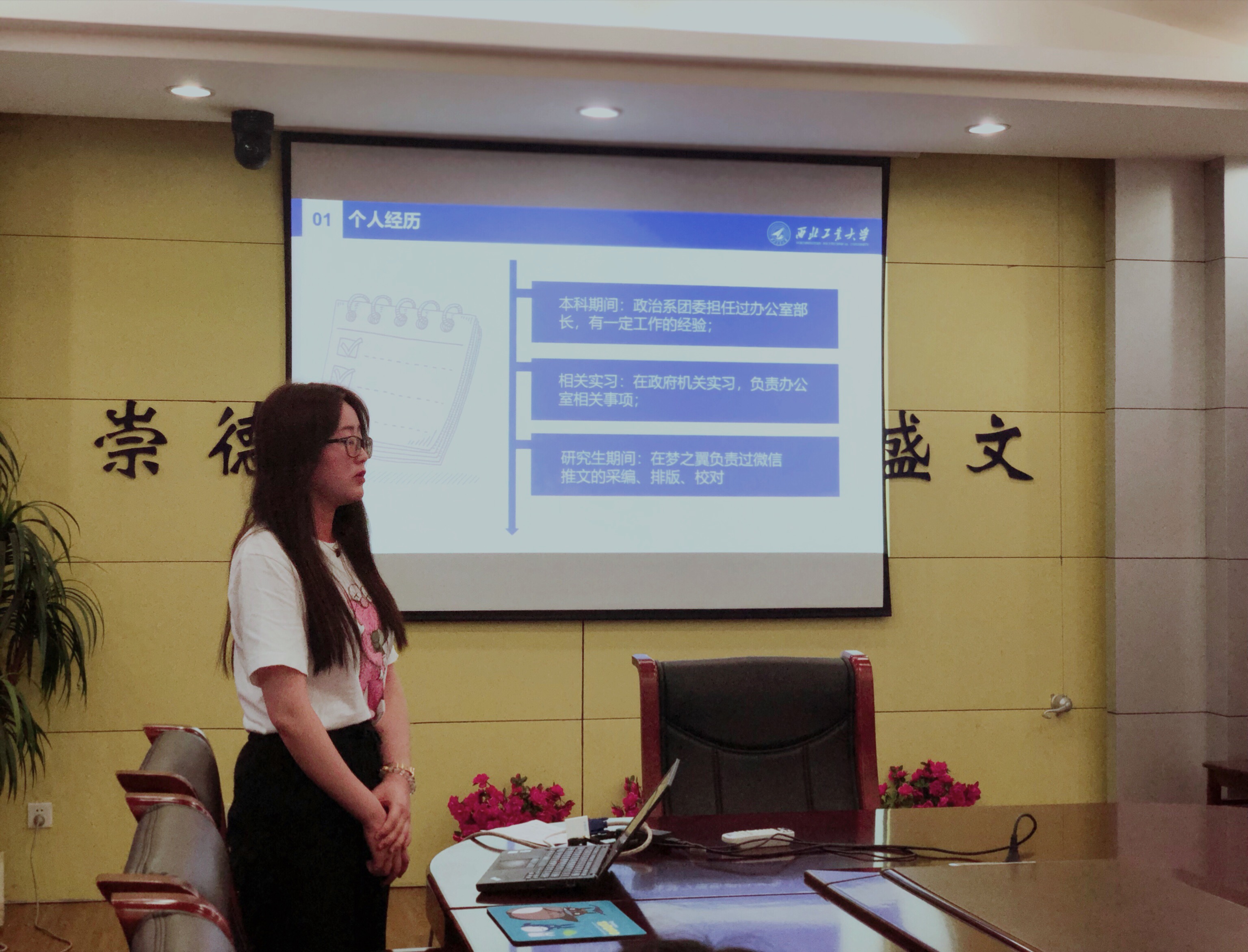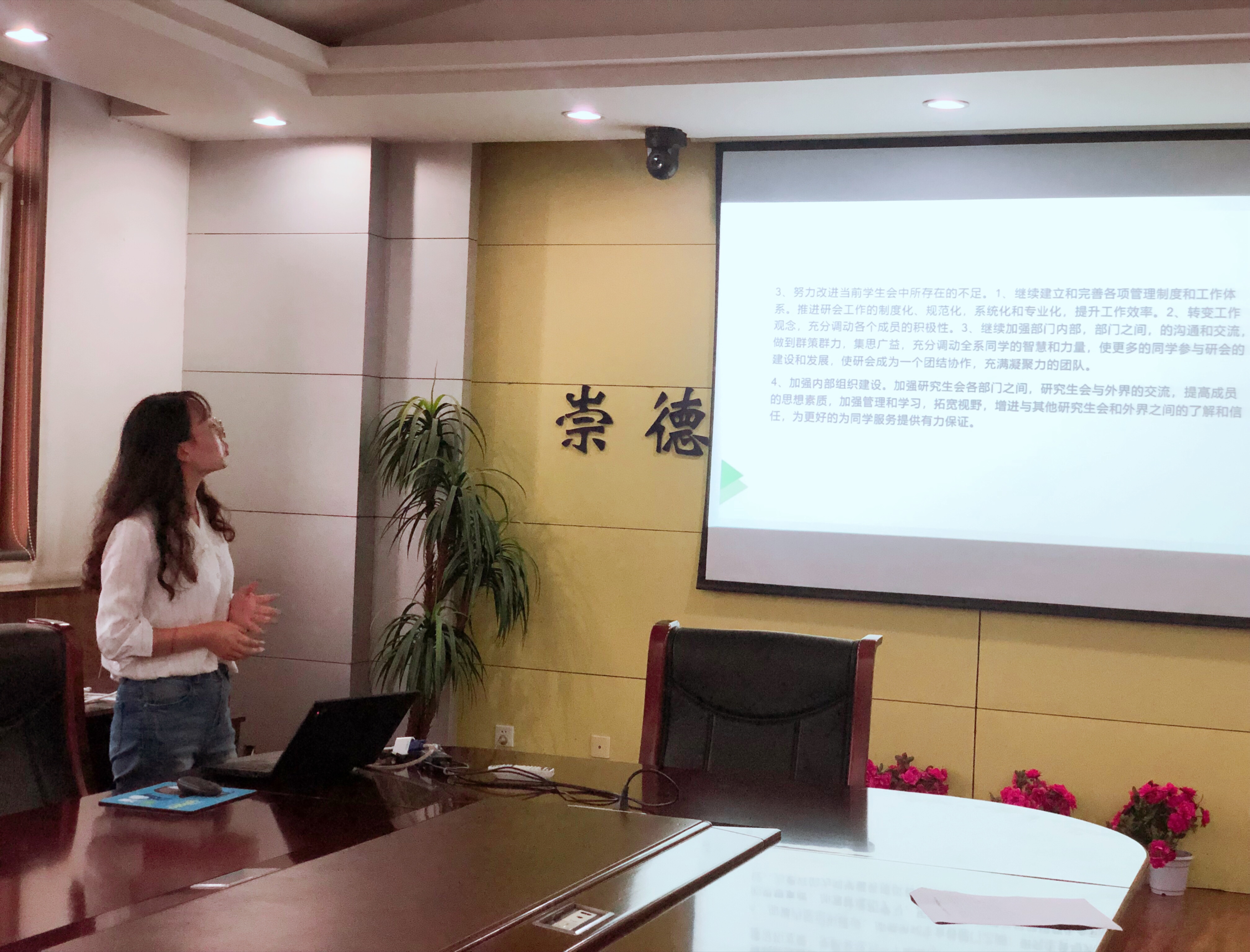 董咪咪总结了自己半年来的工作经历,在研究生会未来的发展规划中,她指出,要制定正确合理的工作规划,划清研会各个部门的职责,保证其有条不紊的运转;同时要组织一系列彰显马院特色的活动,在全校提高91大神