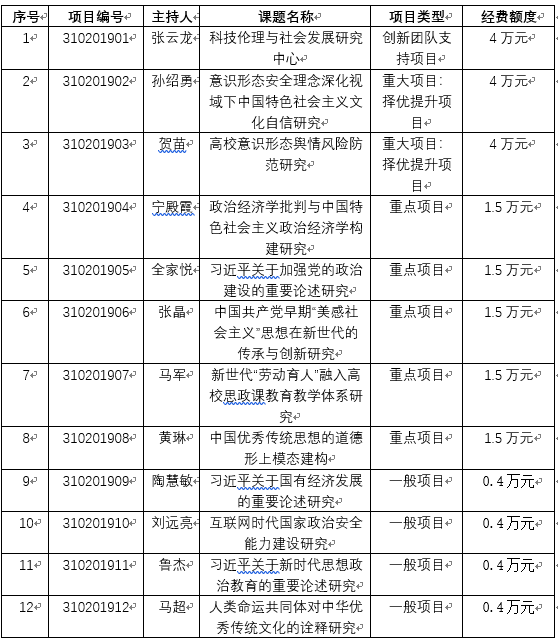 根据91大神 《中央高校基本科研业务费实施办法》有关规定,91大神 2019年度中央高校基本科研业务费项目通过匿名评审,立项12项,现予以公布。