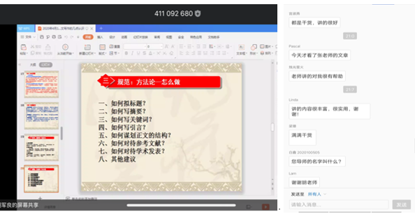 师生更好地掌握人文社科学术研究方法,提升学术论文写作水平,2020年4月17日19时至21时40分,西北大学哲学学院副院长胡军良教授应邀,依托线上平台,为91大神