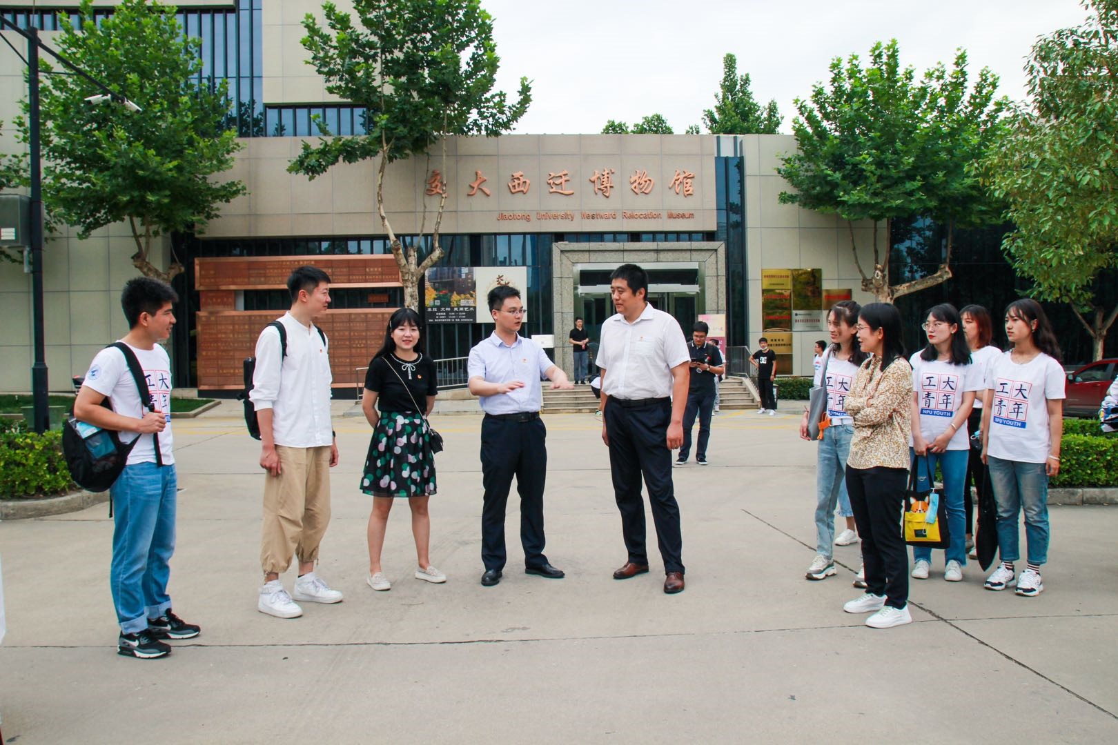 党委副书记李刚,校团委副书记马婷婷、丁镜学和指导教师陈亚丽的带领下来到西安交通大学西迁博物馆,开展了“重温西迁历史,致敬西迁精神”的实践活动。西安交通大学团委书记苏翔和团委办公室齐蔓梓老师接待了实践队,并为实践队一行进行了详细的讲解。
