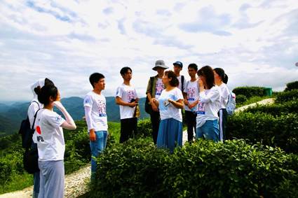 当地村民还在山顶区域建立了一些供游客与当地村民休息的凉亭。实践队在茶园调研时,正巧遇到当地村民自发为游客讲解当地茶文化。凉亭里热情的村民吸引了不少游客,可谓一座难求,实践队员只能站在后排听村民讲茶。这也反映出,当地人对茶有着深厚的感情,更为女娲茶感到自豪。“因茶致富、因茶兴业”的过程,或许并非一帆风顺,但对热爱茶的他们而言,必定是幸福的。