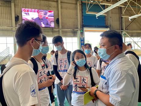 图为实践队队员在工作人员的讲解下参观学习陕汽集团展厅