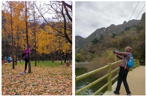 2020年11月1日清晨七点半,身着户外装的队员们分别从友谊校区角楼与长安校区校门乘车前往翠华山地质公园。九点左右,两支队伍安全抵达翠华山脚下。秋天的翠华山景色怡人,山间呈现出五彩斑斓的迷人景色。黄色银杏叶和梧桐叶铺满了翠华山,放眼望去,红色枫叶层林浸染,干枯的老树上挂着红彤彤的柿子,点缀着这宁静的秦岭大山。