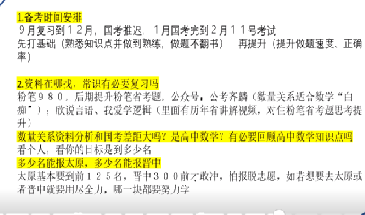 第五位分享的是马克思主义基本原理专业上岸山西省定向选调的宋金金学姐。学姐就考公的备考安排、刷题策略等展开具体讲解。首先,对国考、省考备考时间及考试时间做了详细的讲解。再次,对于如何高效刷题,学姐给出了自己的经验:行测的学习第一阶段打基础,看网课加熟悉做题技巧、把知识点吃透;第二阶段为强化阶段,分模块把前面基础阶段的内容“巩固+深化,刷完题及时订正并复盘反思做错的原因,及时纠错;数量关系以及常识公基是否应该复习以及如何复习学姐也给出了自己的建议:根据自身实际以及选岗需求做出合理规划;申论的学习学姐建议长期的积累加背诵,找寻模板灵活应对,多背多练多写形成“手感”;最后,学姐学姐推荐了诸如公考齐麟、欣说言语、我爱学逻辑等等优质公众号,同时着重强调要珍惜时间去学习,保持积极心态。