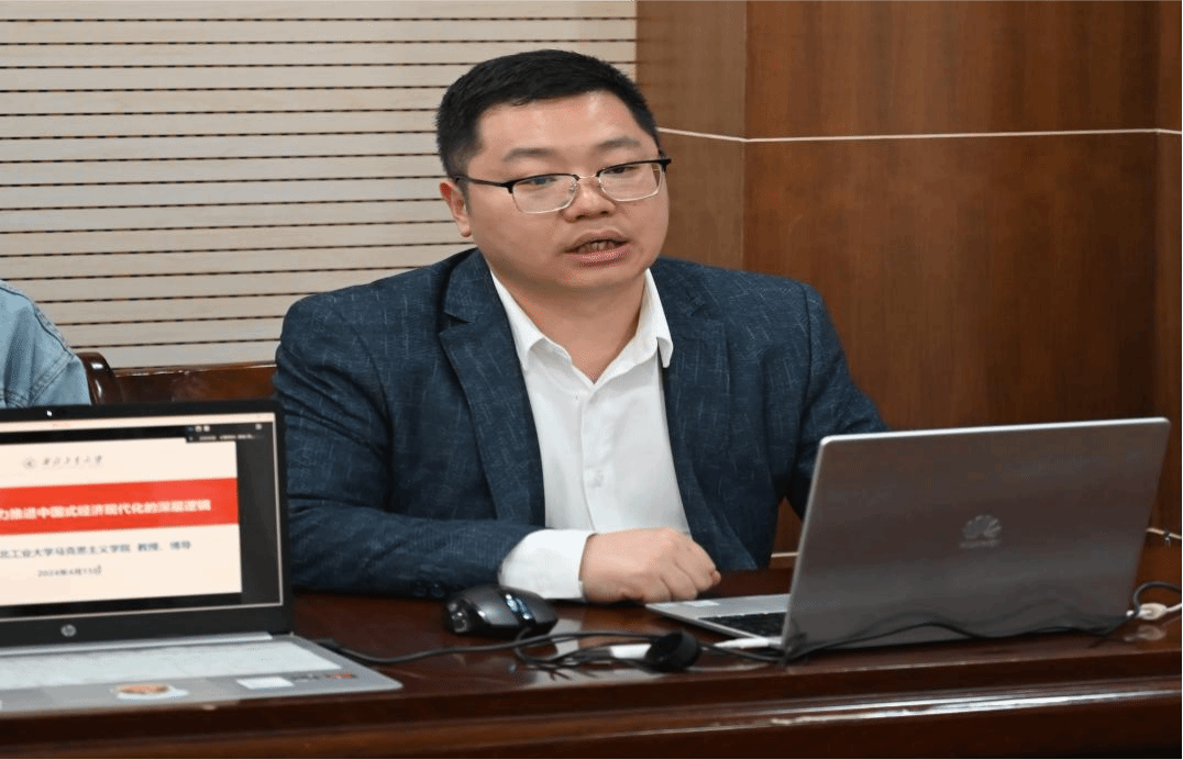 的热情接待表示感谢,并简要介绍了小组的研究方向及成果。他提到,小组一直致力于研读马克思恩格斯经典著作,通过精读与泛读相结合的方式,深入理解原著精神并联系现实进行研究。此次参与读书会,希望能够与在座师生共同探讨新质生产力的相关问题,进行深入的学习与交流。