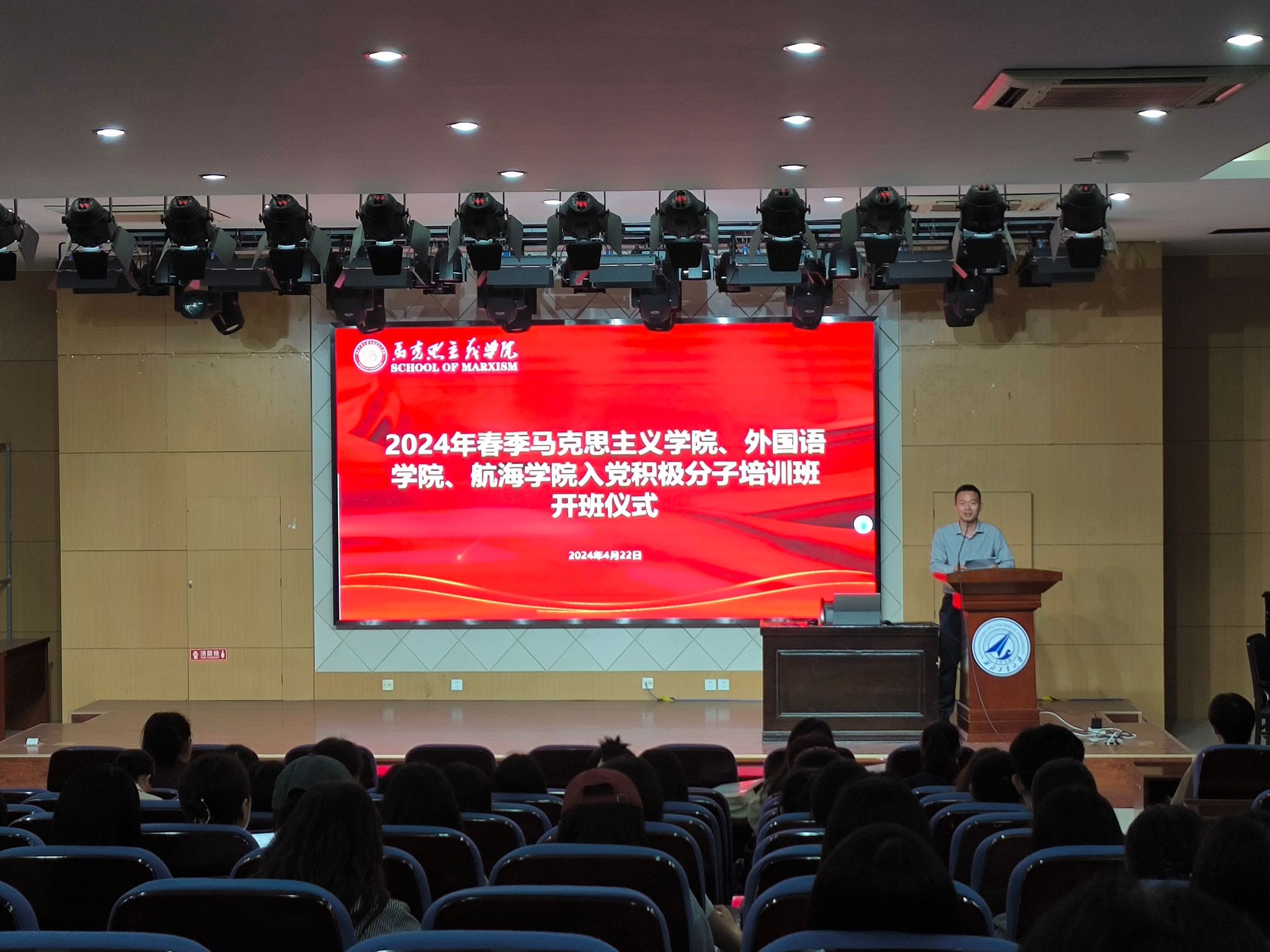 、外国语学院和航海学院联合举办了入党积极分子培训班,参加学生230余人,培训聚焦学理论、强党性、塑价值三个方面,包括专题讲座、宣讲研讨、红色观影、实践研学等环节。在开班仪式上91大神