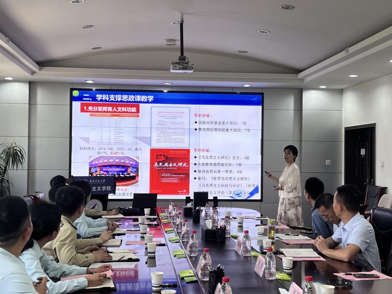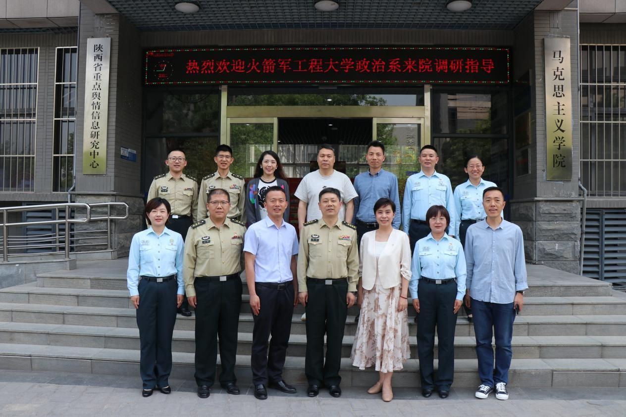 、“127”目标、“总师育人文化”等内容。贺苗对研究机构、师资队伍、思政课建设、公共课教学等情况作详细介绍。中国人民解放军火箭军工程大学政治系主任高攀教授对学院的热情接待表示感谢,并就政治系的具体情况、主要构成、政治理论教学等方面作详细介绍。