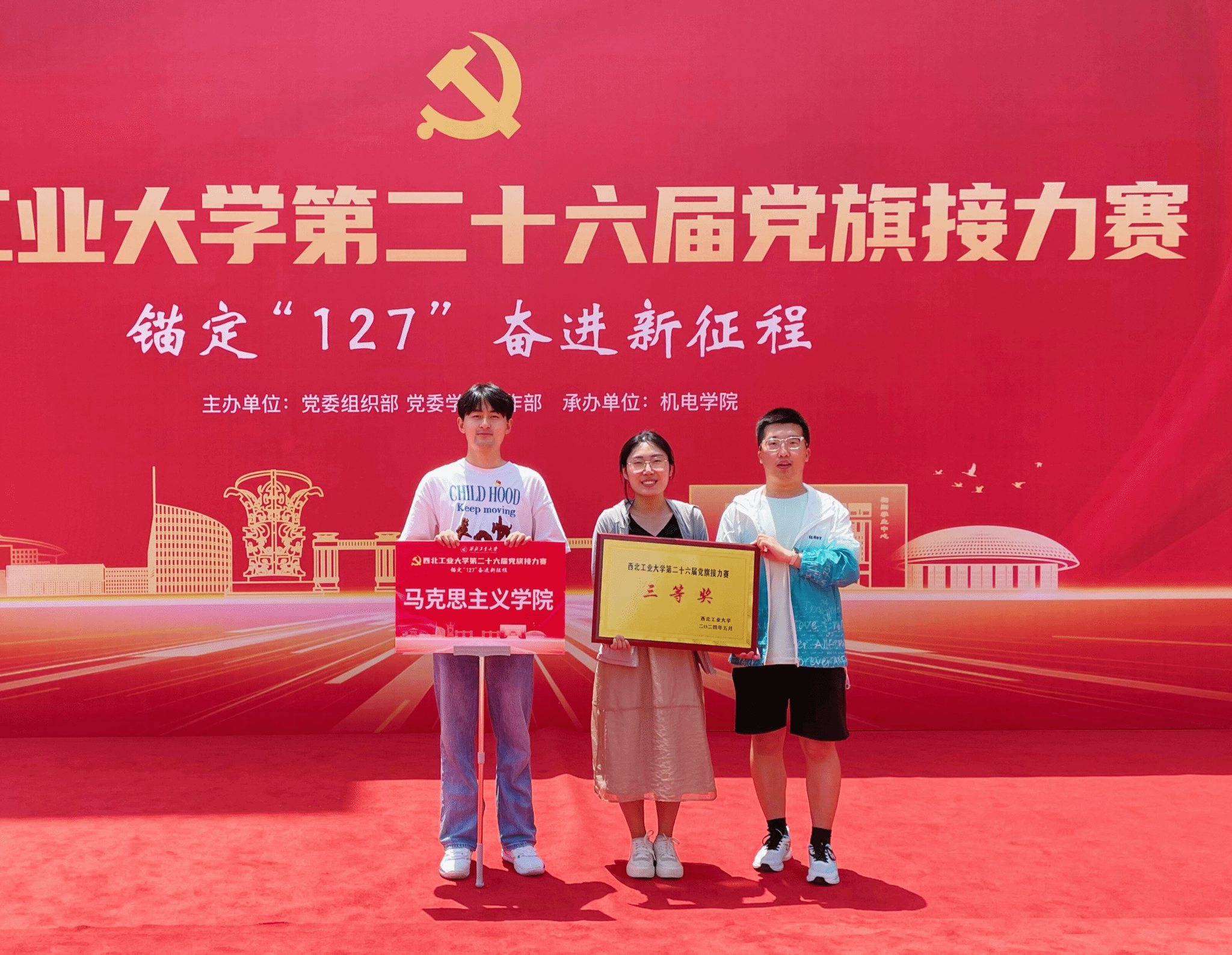 灿烂的骄阳点燃了党旗接力赛的序幕。一场锻炼团队合作,传承红色薪火的接力比拼正式拉开序幕!选手们手持着党旗从起点冲出,赛道两侧的呐喊助威声此起彼伏。参赛党员高举党旗,奋力奔跑在赛场上,党旗在党员们的手中不断传递、迎着朝阳缓缓飘扬。选手们通过接力赛跑的形式将党的奋斗历程铭记在心,使党员在有趣且激烈的比赛中受到教育、得到锻炼,进一步牢记初心使命。最终,经过激烈的比拼,在参加比赛的34支队伍中,学院代表队获得三等奖,圆满完成本次比赛。