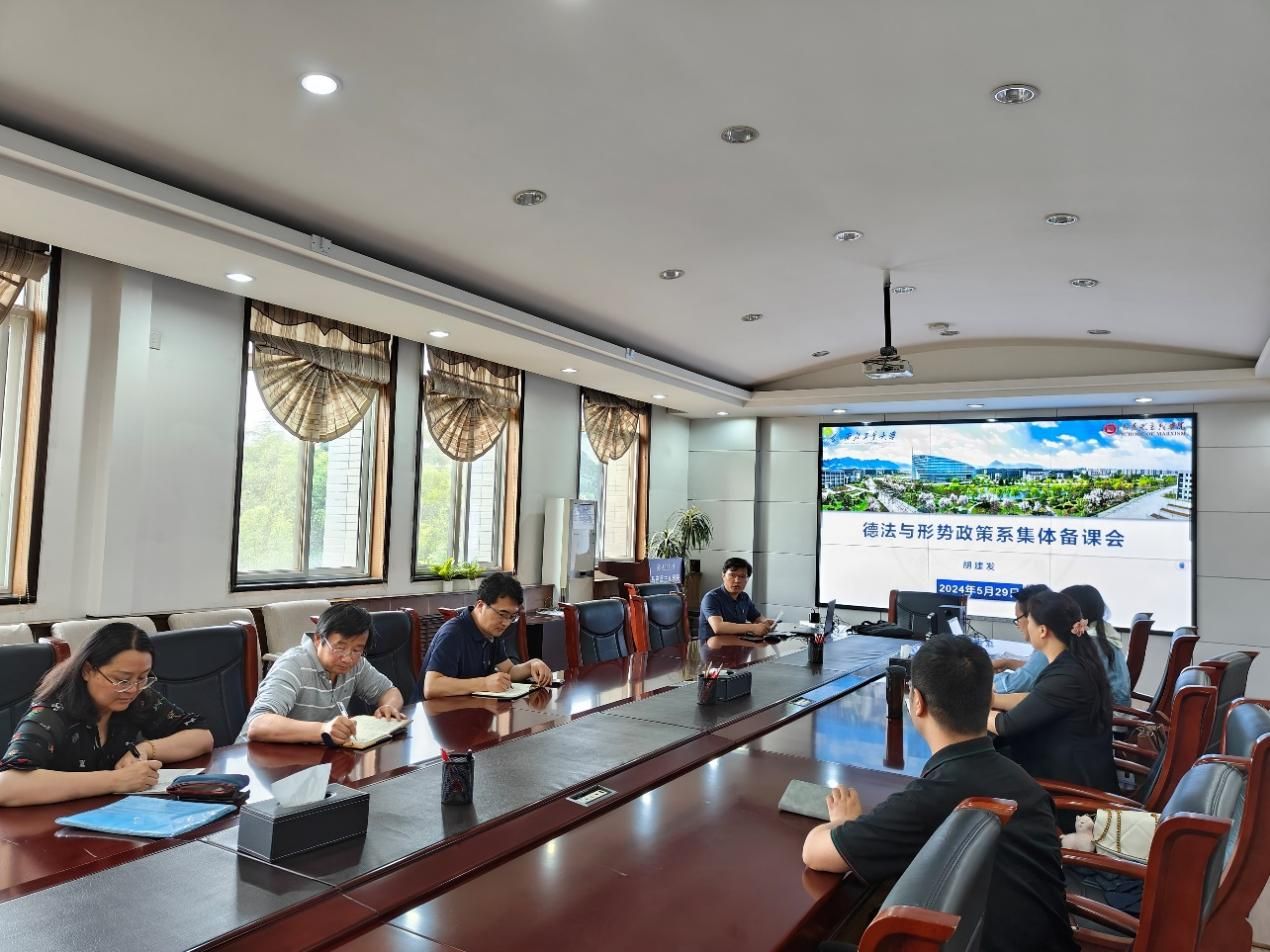 德法与形势政策系开展集体备课活动,深入学习习近平总书记对学校思政课建设的重要指示精神。本次集体备课会由系主任胡建发主持。