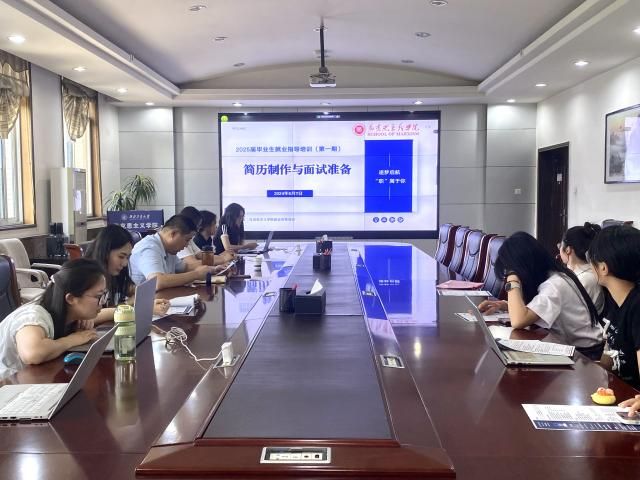 在学院楼208会议室开展2025届毕业生就业指导培训(第一期)——简历制作与面试准备。本次培训由学校就业宣讲团成员、学院兼职辅导员单璐玉和崔颖文主讲。学院党委副书记李刚、学工主管刘敏以及2025届全体毕业生参会。