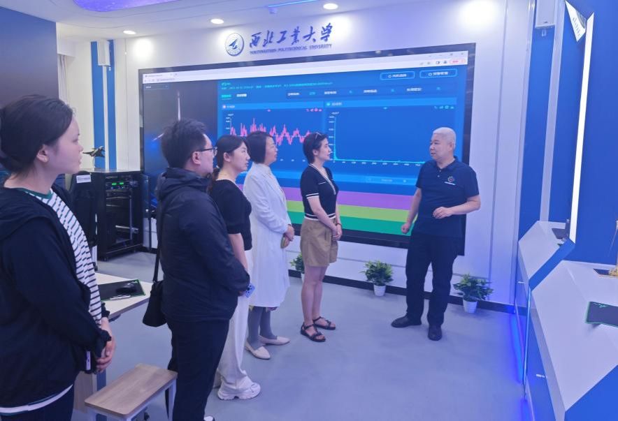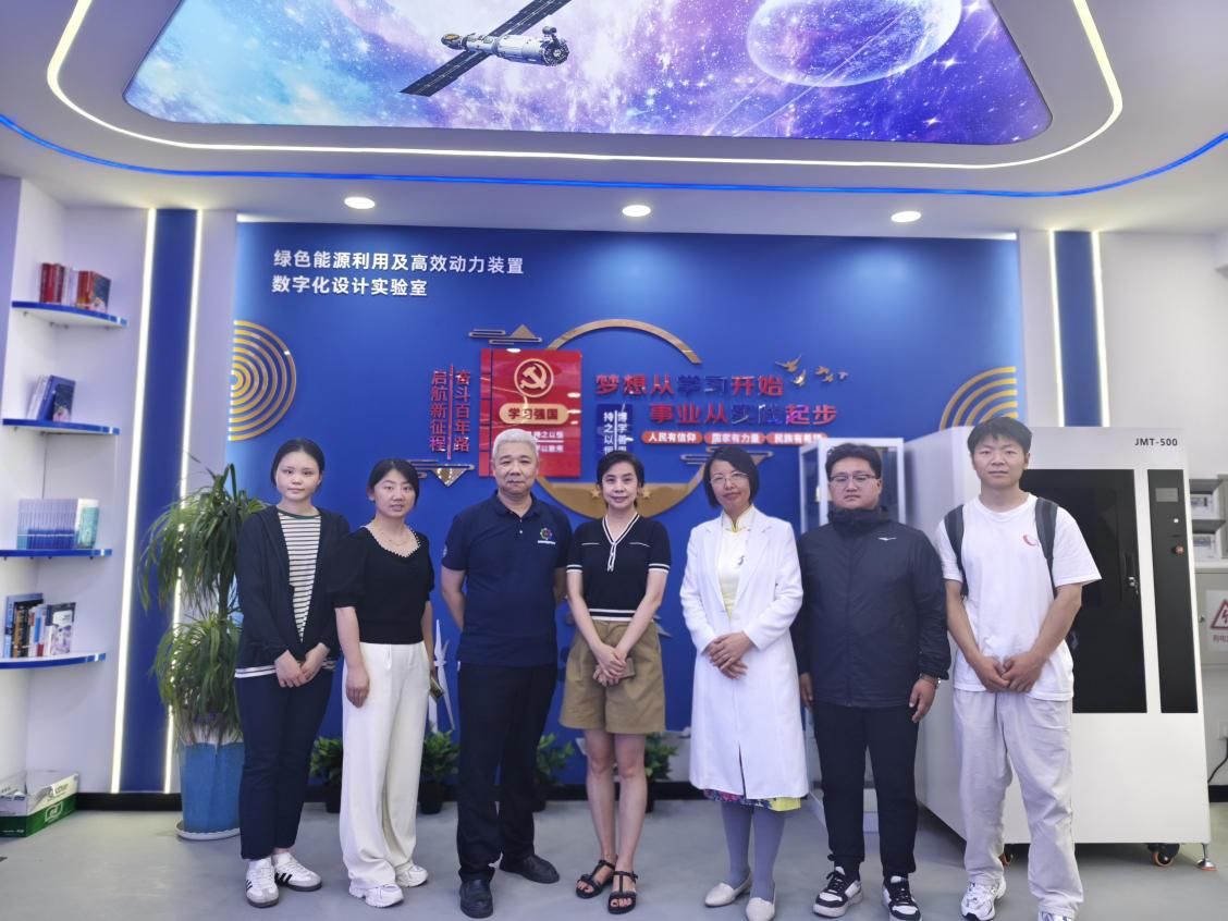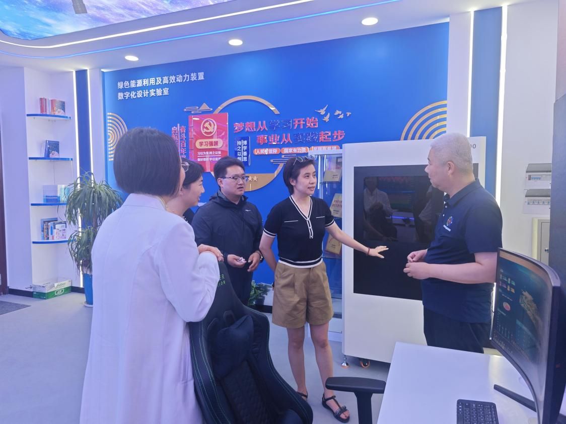 师生在副院长贺苗的带领下,于2024年6月19日上午共同参观了学校动力与能源学院“绿色能源利用及高效动力装置数字化设计实验室”,并开展了数字化实验室建设调研。