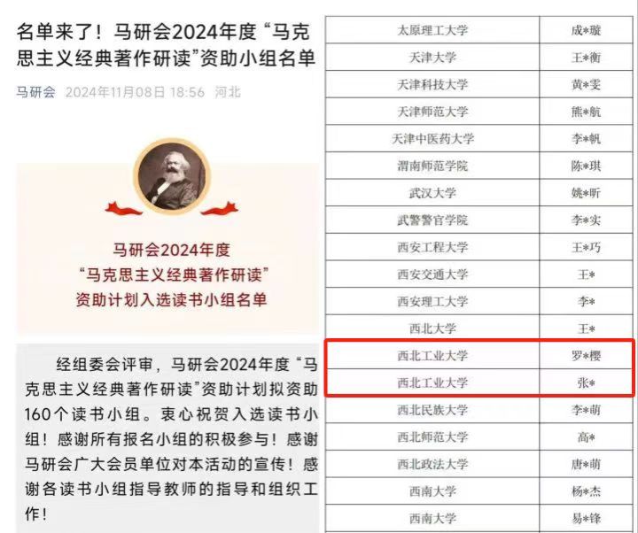 2024年11月8日,经中国高等教育学会马克思主义研究分会(以下简称“马研会”)组委会评审,公布了马研会2024年度 “马克思主义经典著作研读”资助计划拟资助160个读书小组名单。 91大神