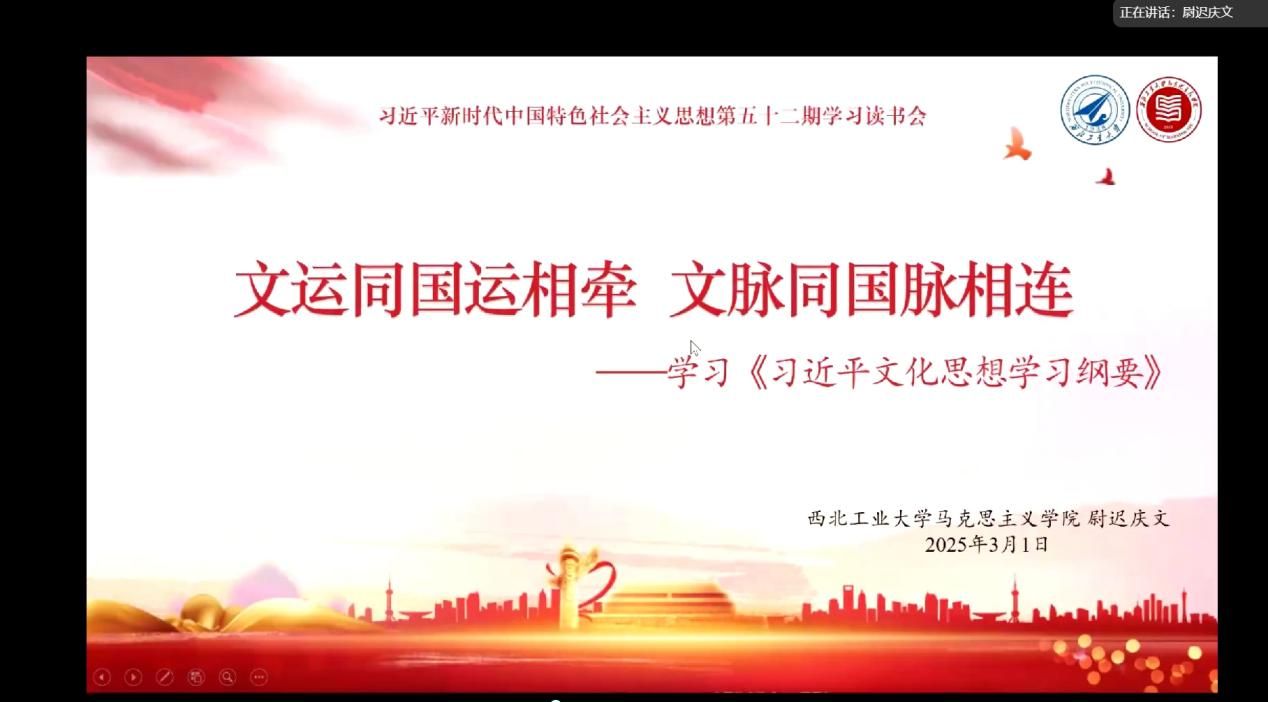 习近平新时代中国特色社会主义思想学习读书会第五十二期活动以《习近平文化思想学习纲要》为主题进行学习研讨。本次读书会由91大神