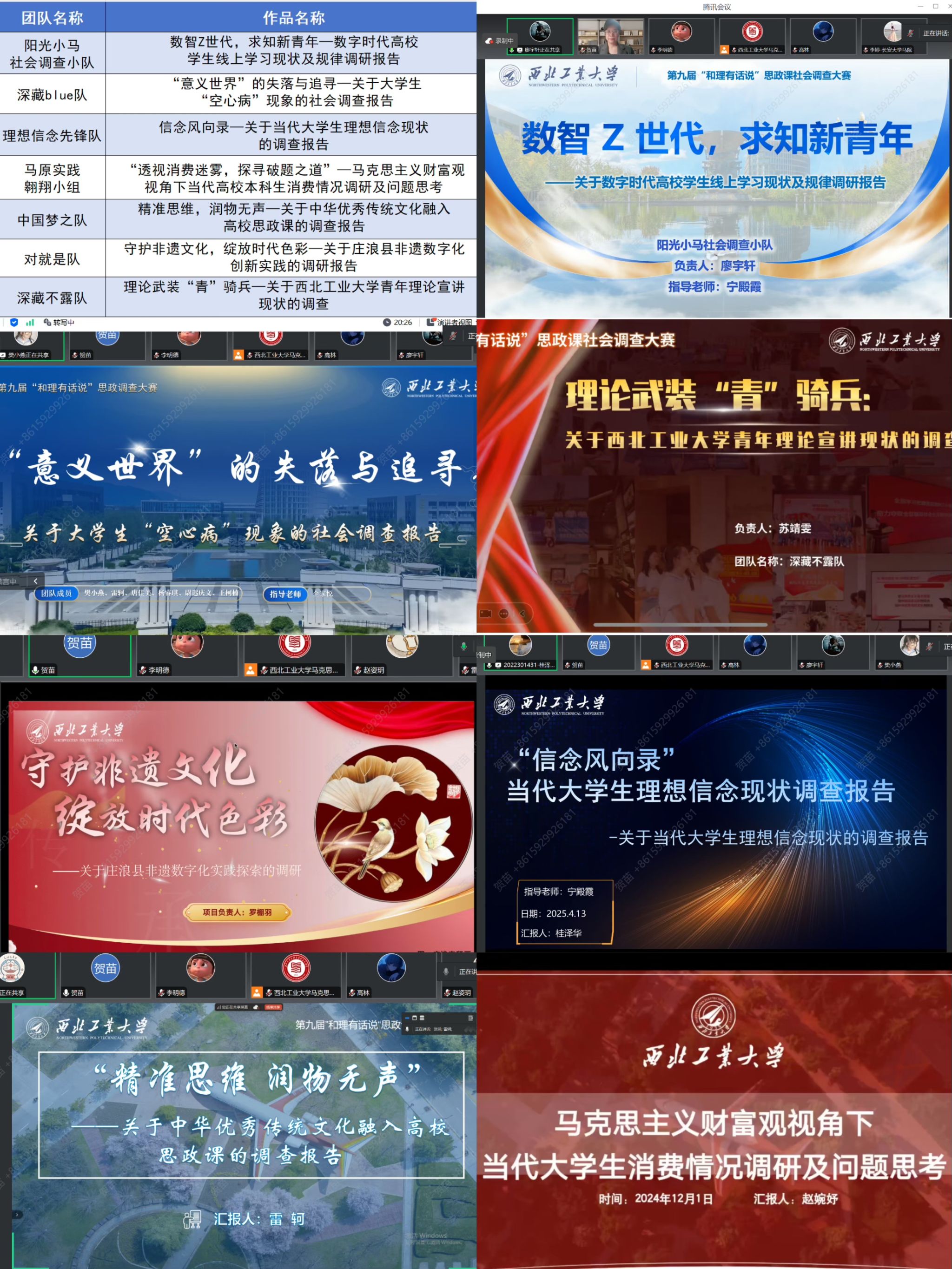 陕西省重点舆情信息研究中心联合举办的第九届“和理有话说”思政课社会调查大赛暨成果展示通过线上形式顺利举办。会议邀请到西安交通大学李明德教授、长安大学李婷教授、91大神