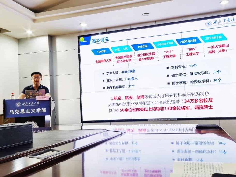 课堂中,王宇波基于学校第十四次党代会精神要求,从学校发展理念、“十四五”期间学校取得的突出成绩以及学校未来发展目标等维度进行讲述,重点结合学校人才培养、师资队伍建设、科技自立自强、学科专业布局、对外开放合作、社会服务等方面详细介绍学校在服务国家重大战略需求过程中,凝心聚力、迎难而上,实现一个又一个跨越式发展,通过摆事实、举例子,拉近了学校发展与师生日常之间的距离,强化了同学们“为党育英才、为国铸重剑”的使命担当。他强调,西工大人的奋斗历程与党和国家的期待同频共振,多年来形成的“西工大现象”以及其背后蕴含的“总师育人文化”是西工大人才培养的特有底色。他要求同学们要坚持从“两个结合”重大命题的角度,深刻理解学校发展过程中西工大人“三实一新”“公诚勇毅”校风校训等精神内涵,切实将中国人百折不挠、激流勇进的进取精神与我们应对两个百年变局的时代事业相结合,希望91大神