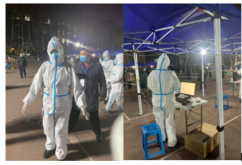 (图为贺苗老师在核酸检测点做志愿服务工作)