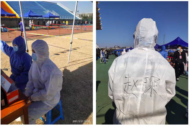 (图为李亚昕同学参与学校核酸检测工作)