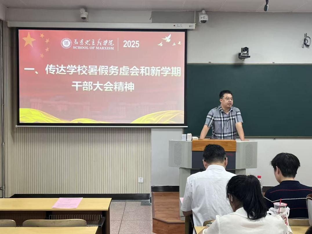 在友谊校区西馆XB301召开2025年全院大会,传达学习学校2025年暑期务虚会和新学期中层干部会会议精神,并对新学期重点工作进行部署,学院领导班子及全体教职工参加会议。会议由学院党委书记王彦革主持。