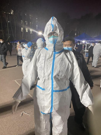 在学校机关党委组织的志愿服务号召下,贺苗老师工作之余积极参加核酸检测工作和邻里协助,亲身体验到一线疫情防控人员的不易,并内化为工作导向。在线思政课教学时与学生交流志愿者服务,与疫情防控志愿者同上一堂思政课,解析“以人民为中心”的核心价值,增强广大同学的制度自信和文化认同;在给省一级报告中建议借鉴学校优秀做法优化其他单位基层防疫人员轮班制度加强健康关怀。