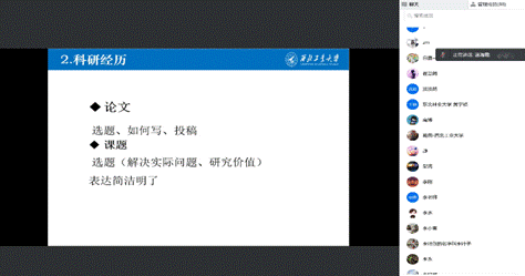 首先,温海霞老师分享了自己在学生时期的求学经历,特别是在硕士和博士阶段,温老师勉励同学们要抓住自己在校的宝贵时间,勤奋读书,无悔地度过自己的青春。其次,分享了自己工作阶段的科研经历,着重强调了科研工作如何选题、选作者、选期刊的方法。然后,从科研、工作和家庭的协调方面指出生活的重要性,忙碌于工作,安然于家庭。