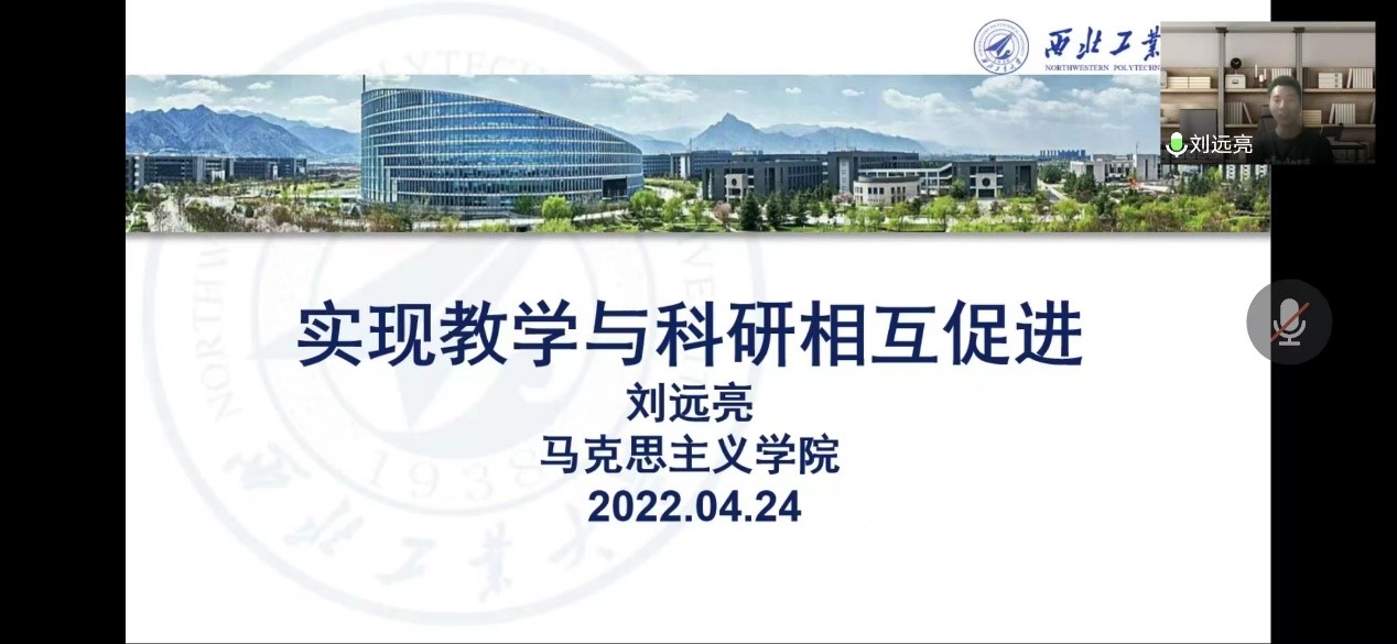 首先,刘老师结合自己的工作经历进行了经验分享,分享主题为“实现教学与科研相互促进”。刘老师首先强调教学和科研的关系是一个需要深入探讨的问题,并且强调教学和科研都是教师的基本工作,二者是一致的,把握好二者关系对青年教师尤其重要。其次,刘老师指出要正确处理教学和科研的关系,在工作中教学与科研要适当平衡,做到相互促进、教研相长。