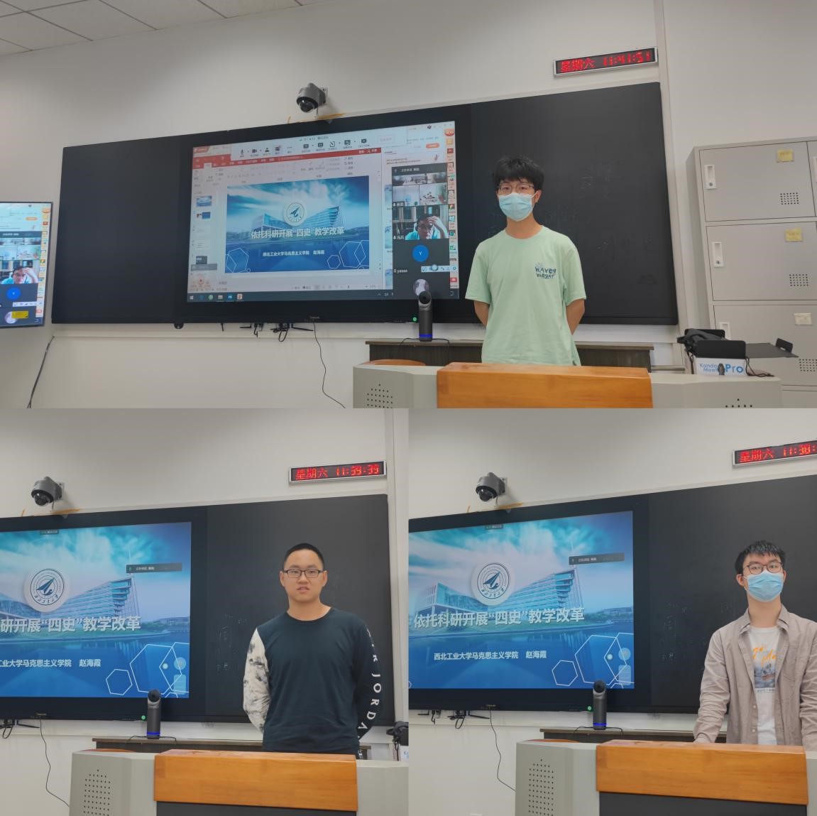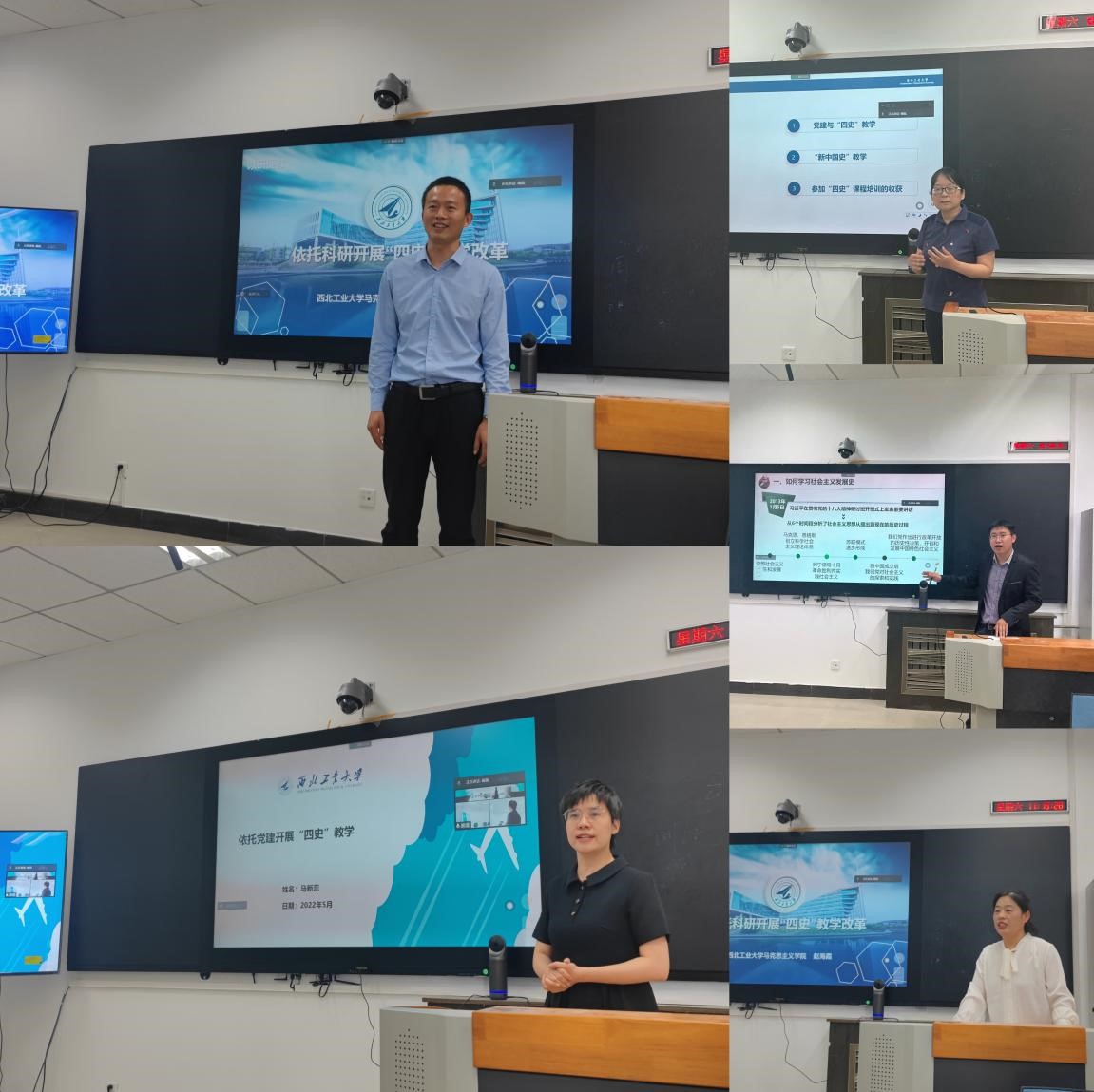 在教研分享环节,《新中国史》课程负责人马新蕊副教授做了依托党建开展“四史”教学的分享,指出以支部建设为契机,推动”四史“教学、科研、社会服务等功能于一体,以习近平总书记大历史观为根本遵循,准确把握新中国史的主线,积极回应学生关注,及时纠偏。《社会主义发展史》课程负责人山磊助理教授做了课程思政与思政课程协同推进“四史”课程建设的分享,认为只有通过全方位引入思政育人要素,使广大本科生在学习专业课程的同时,正确认识社会主义发展的历史主题、历史脉络、历史规律,牢固树立对马克思主义的信仰、对共产主义和社会主义的信念。《中共党史》《改革开放史》课程负责人赵海霞副教授,对“四史系列课程”教学团队依托科研开展课程建设情况,存在的问题及以后的教学工作规划进行分享,认为“四史”系列课程教学离不开教师们对相关内容的研究,教师需坚持历史审视与现实观照相关联,进一步加强四史相关的研究,持续挖掘思想政治理论背后的历史文化底蕴,持续拓展话语边界,切实提升思政课教学的实效性。91大神