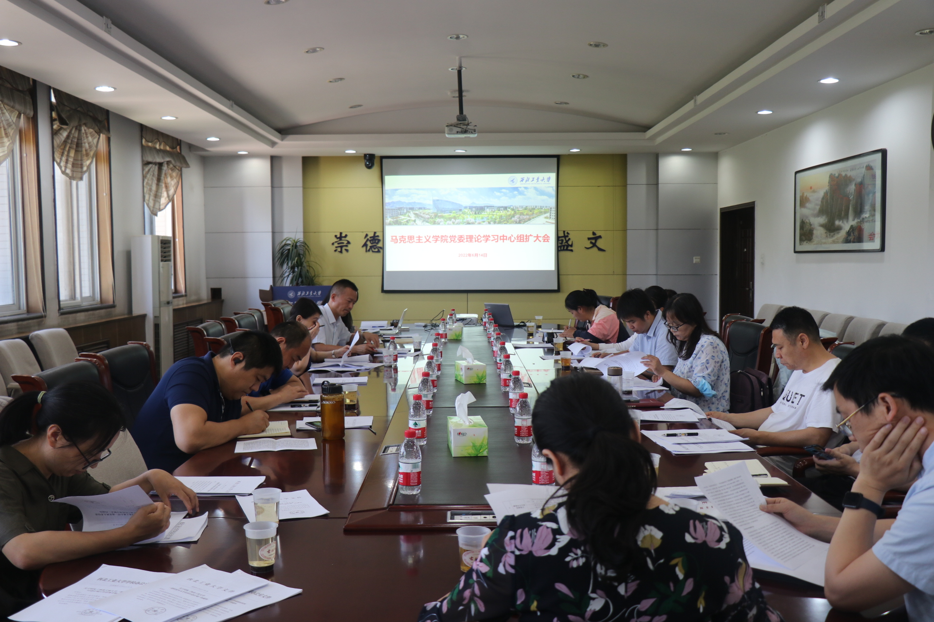 科技工作高质量发展行动计划》等内容,结合马院、马学科、思政课建设等实际情况,详细介绍学院推进和落实情况;她强调要坚持立德树人,促进学生全面发展,强化思想引领。教育学生树立“四个正确认识”,增强“四个意识”,坚定“四个自信”,做到“两个维护”;建设高水平教学队伍,提高教书育人能力。完善思政教育体系这个立院之本,加快形成以“思政课程+课程思政+导学思政”为核心的研究生思政育人新格局;强化文科研究特色,替提升文科研究水平,完善文科科研布局,发挥文科建设工作小组统筹协调作用,构建以马克思主义理论学科为引领,各学科交叉融合的学术共同体。