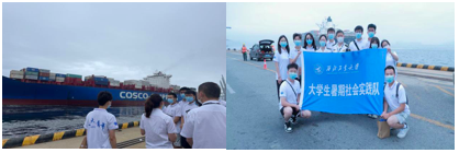 首先,实践队员们在卢大平大队长的带领下参观了大窑湾海事处辖区的业务范围及工作环境,其数字化与自动化程度,让队员们惊叹于我国工业发展的步伐之快,无论是集装箱运输管理设备还是我国自主研发制造的远洋货轮,都表明了我国工业水平的飞速提升和对安全生产的重视及保障。特别是运载船上的一个个排列整齐的集装箱,无不显示着我们国家当前科技的发达程度和设备的先进状态。