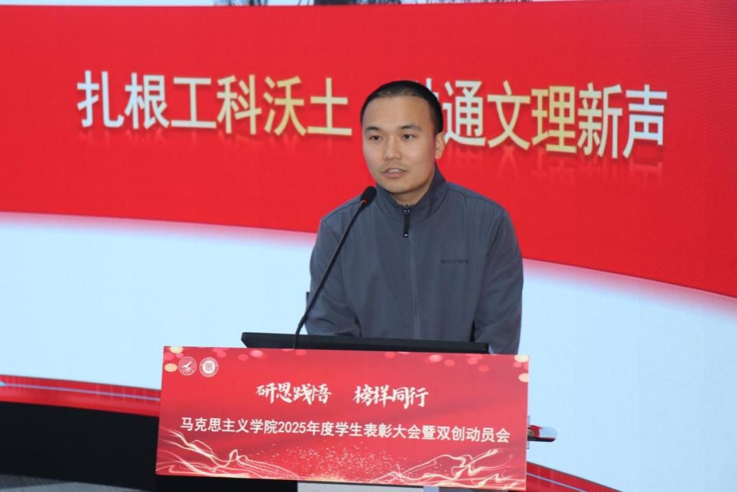 本次大会表彰了2025年度获得各级各类荣誉奖励的先进集体和优秀个人,包括在党内、团内表彰中获奖的集体5个、个人19人,国家奖学金获得者7人、专项奖学金获得者5人、校级奖学金获得者17人,校级先进集体4个,社会实践及双创竞赛先进集体17个、个人11人,学生工作先进个人28人。