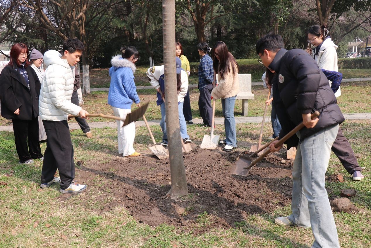 活动现场暖意融融、干劲十足。师生们分工明确、默契协作,挥锹培土、扶苗正干、浇水灌溉,共同种下“劳育之树”“校友之树”“共建之树”。 榉树迎风挺立,扎根沃土,既为春日校园增添了盎然生机,也为即将踏上人生新征程的2026届毕业生,留下了专属的校园青春印记。