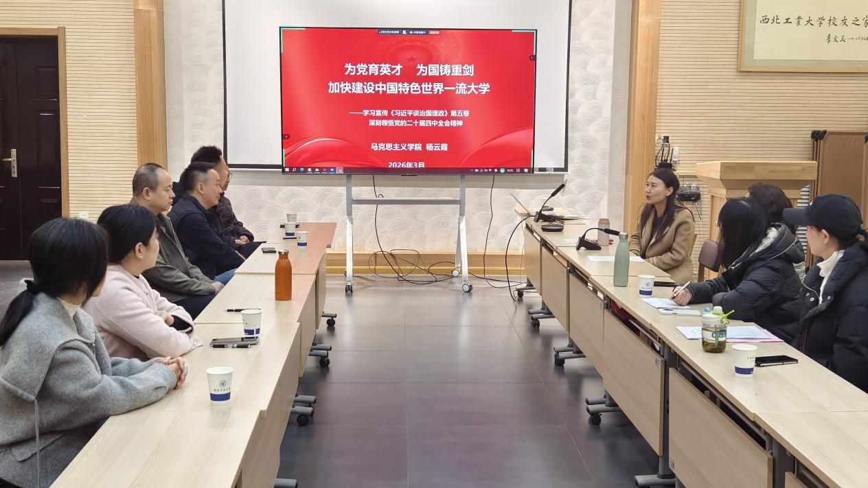 2026年3月13日下午,杨云霞院长以《为党育英才 为国铸重剑 加快建设中国特色世界一流大学》为题,在校友之家为马克思主义中国化研究系党支部全体党员讲授专题党课。此次党课由支部书记陈诚平主持。