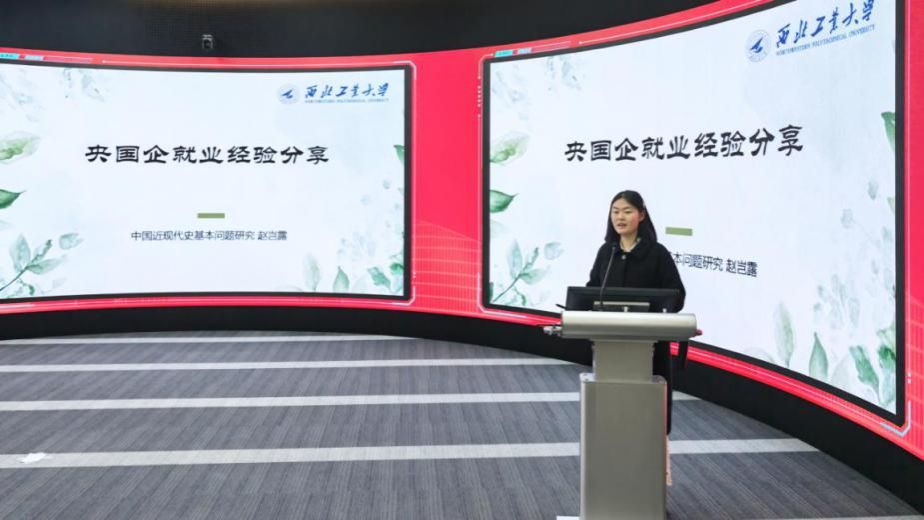 2026届硕士毕业生赵岂露签约国企,她围绕军工央企招聘条件展开分享,建议同学们找准自身优势,充分利用学校专场招聘等平台,主动对接用人单位、积极争取机会,为同学们提供了务实参考。同时,她鼓励大家拓宽就业思路,避免局限于单一赛道。