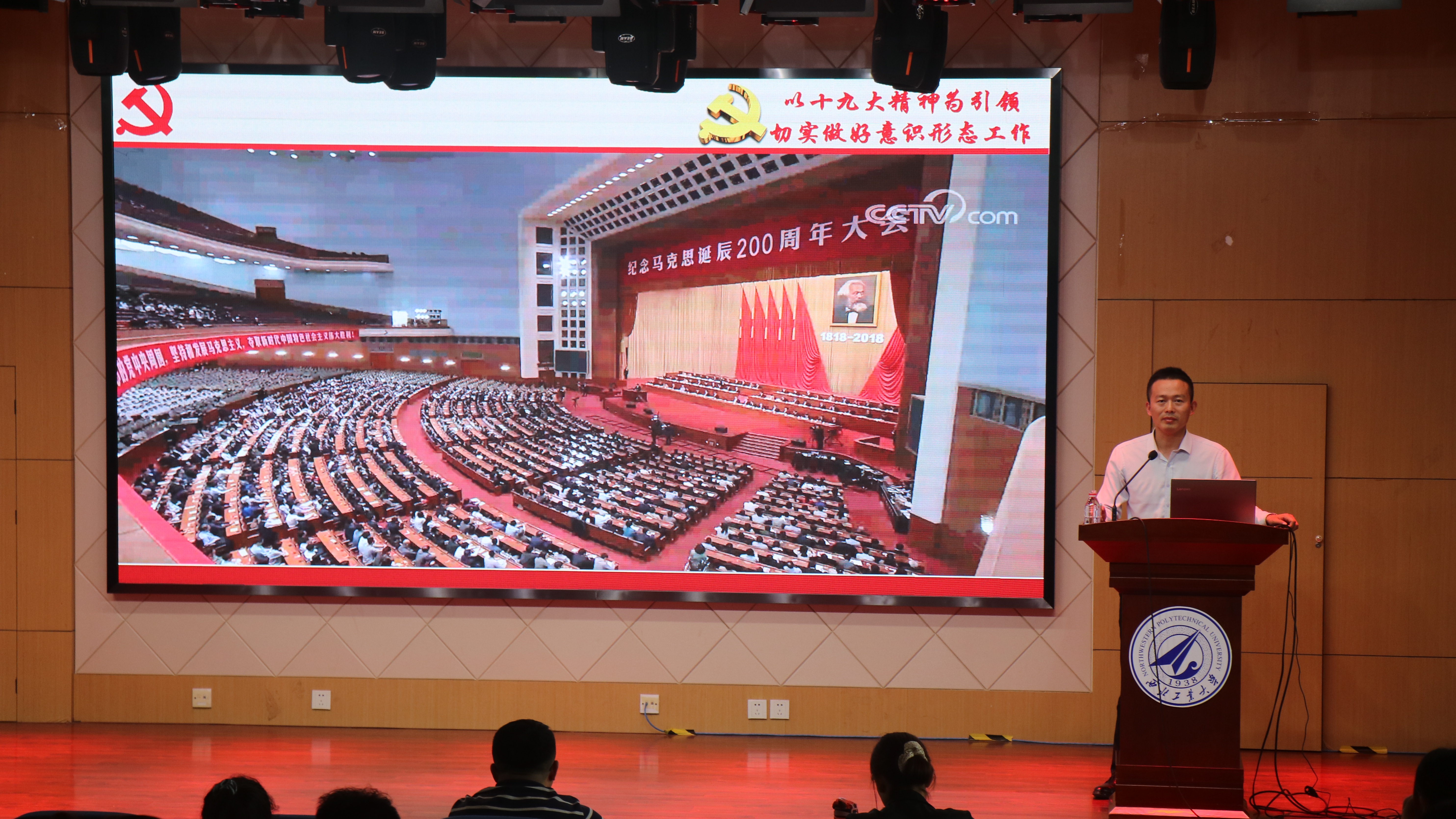 党委副书记(主持工作)蒲传新围绕“新时代意识形态工作的理论思考与实践要求”这一主题,开展专题党课,学院师生各党支部书记、支部委员、党员、团员代表等参加学习。
