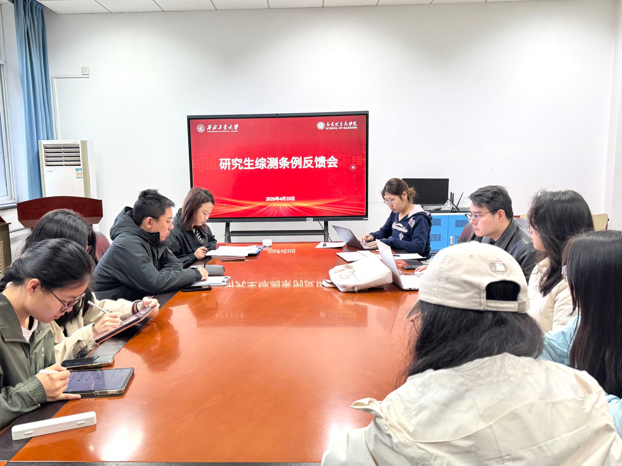 分场次开展研究生与本科生综合测评条例意见征求工作。研究生综测反馈会在学院楼209召开,由学工主管刘敏主持;辅导员董润在208会议室同步面向全部本科生班级征求意见。