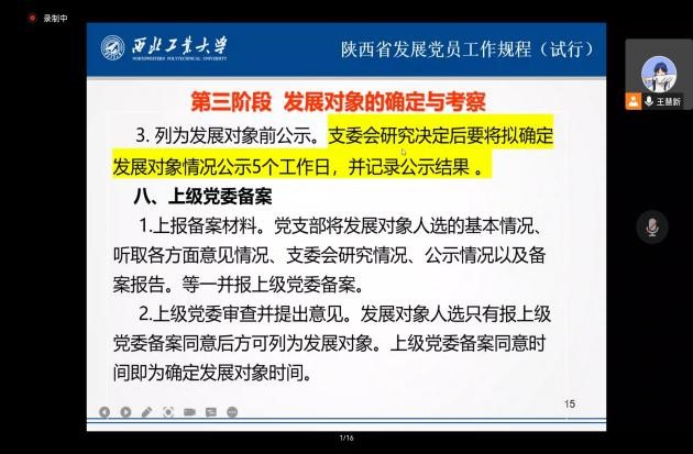 为进一步增强党课培训的针对性与实效性,努力培养理想信念坚定、综合素质优良的党员队伍后备力量。2022年10月13日上午,在腾讯会议上开展了主题为《陕西省发展党员工作规程(试行)》的党课培训,本次培训由91大神