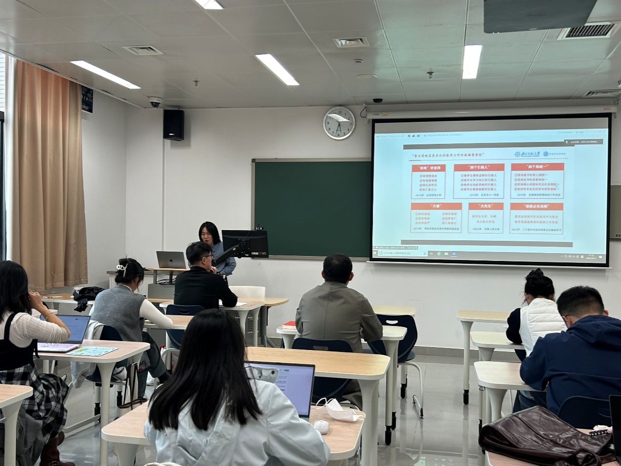 2025级博士生党支部成员、求索学社宣讲团成员邓茹菲同志以“铸魂强师:中国特有的教育家精神‘特’在哪里?”为主题,通过回顾启功先生“三进辅仁”的经历和陈垣先生识才爱才、躬耕教育、倡导“励耘精神”的生动实践,重点解读了教育家精神中“言为士则、行为世范的道德情操”这一要点,鼓励党员同志向教育家前辈学习,坚持严谨治学与崇高人格的内在统一。
