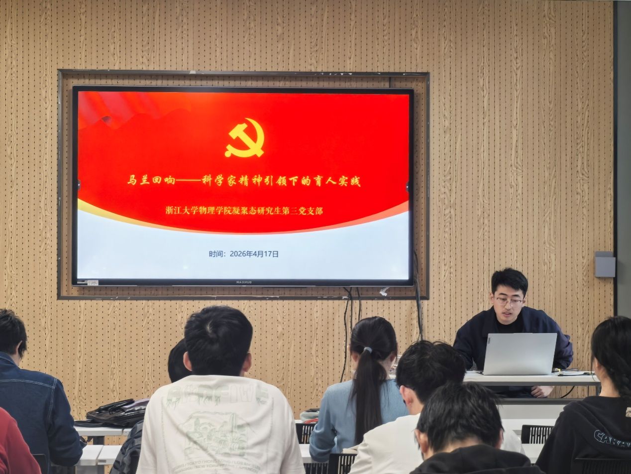 浙江大学物理学院凝聚态研究生第三党支部宋晨耀同志作实践特色分享