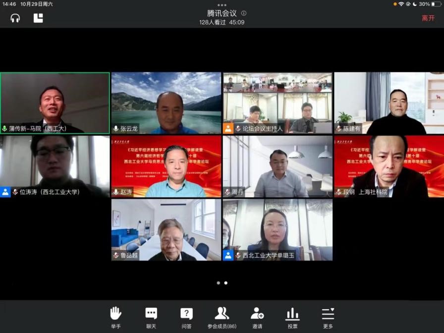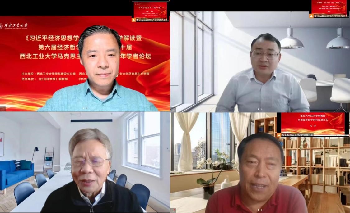 马克思主义宁殿霞老师就习近平关于“发展数字经济”重要论述从历史进程、历史机遇、社会变革、战略选择四个方面进行了哲学解读。作为翱翔青年学者代表,西北大学经济管理学院安梦天博士作了题为“比较与超越:西方生态现代化理论与中国式人与自然和谐共生的现代化”的发言、上海财经大学人文学院李茜博士做了题为“数字拜物教的本质及其批判性超越——以习近平数字经济思想为指导”的学术交流。