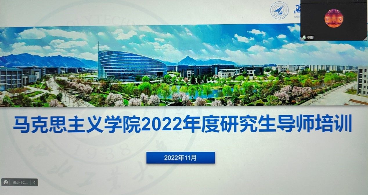 其次,李刚从学生工作、校园文化生活等方面,为与会教师做了工作情况介绍,提出导师在督促学生学业进度的同时,更多关注学生的身心健康发展;疫情当前,更加重视在校学生进出校园的审核管理工作,以学生的人身安全为第一,落实好“以学生为根、以育人为本”的教育理念。