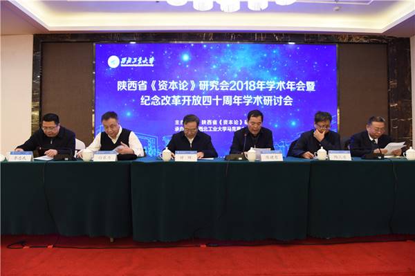 NPU News Network, December 10 (Du Yao) On December 8th, the 2018 Academic Annual Conference ofDas KapitalResearch Association in Shaanxi Province and Symposium on the 40th Anniversary of Reform and Opening Up was successfully held byDas KapitalResearch Association in Shaanxi Province and the School of Marxism in NPU. The representatives of teachers and students from School of Marxism in our university, together with nearly 120 representatives from Provincial universities, Party Schools, Military Schools and Social Science Research Units, attended the conference, including Chen Jianyou, member of the Standing Committee of CPPCC and Deputy Secretary of the Party Committee of our university; Gan Hui, Chairman of the Social Science Association in Shaanxi Province; Yang Sanxing, Director of Government Policy Research Office in Shaanxi Province; Bai Baoli, Chairman of the Capital Economist Forum, Vice President ofDas KapitalResearch Association in China, Vice President of the National Institute of History of Marxist Economic Thought, Honorary President ofDas KapitalResearch Association in Shaanxi Province and Lecture Professor of our University; Zhang Baotong, Deputy Director of Academic Committee of Academy of Social Sciences in Shaanxi Province; and Kong Xiangli, President ofDas KapitalResearch Association in Shaanxi Province.