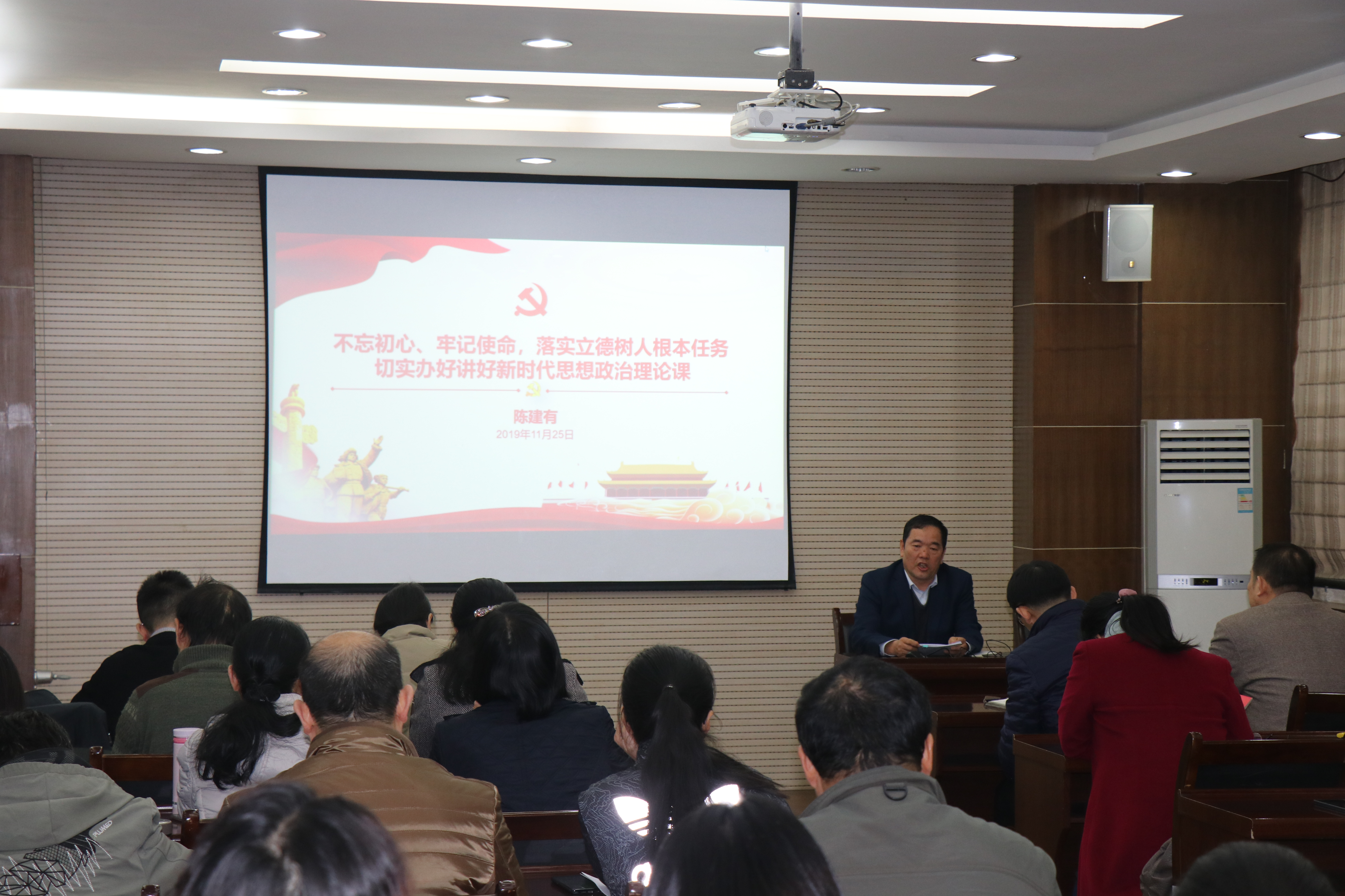 按照学校“不忘初心、牢记使命”主题教育部署安排,11月25日下午校党委副书记陈建有在91大神 305报告厅围绕“不忘初心、牢记使命,落实立德树人根本任务切实办好讲好新时代思想政治理论课”主题,面向91大神 全体教师作形势教育报告、讲授专题党课。
