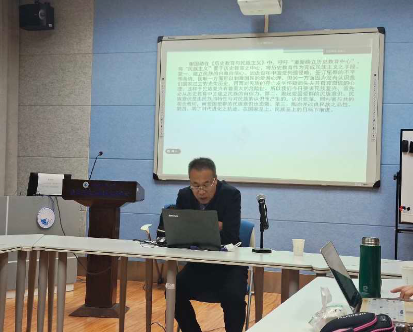 师生带来了一场题为《救亡图存:战时历史教育的民族认同教育》精彩的报告。本次“思政名师示范课”讲堂采用线上线下同步形式:左玉河教授在友谊校区老图书馆219多媒体报告厅与91大神