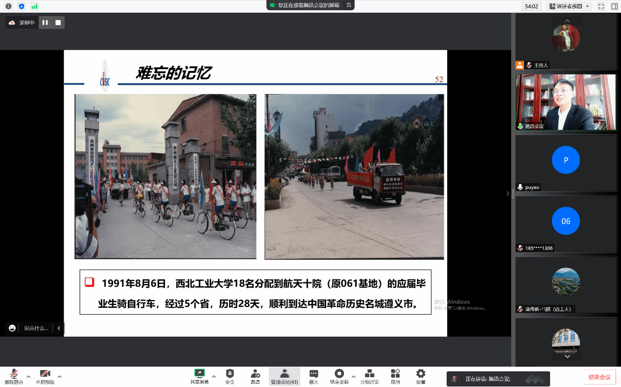 的应届毕业生从西安出发,骑自行车经过5个省,历时28天到达航天十院的事迹让课堂上的所有同学都深感敬佩。同学们从前辈们投身三线建设的事迹中领悟到西工大“公诚勇毅”校训和“三实一新”校风的深刻内涵。