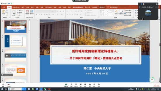 邱仁富教授,对《习近平新时代中国特色社会主义思想概论》教研室全体教师进行了集体备课辅导,交流研讨,由课程首席教授鲁杰主持本次备课辅导会。