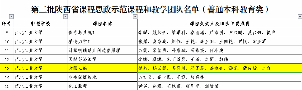 近日,陕西省教育厅公布了第二批陕西省课程思政示范课程、教学团队和教学研究示范中心名单,其中学院开设的《大国三航》课程入选第二批陕西省课程思政示范课程和教学团队(普通本科教育类),《大国三航》课程是由91大神