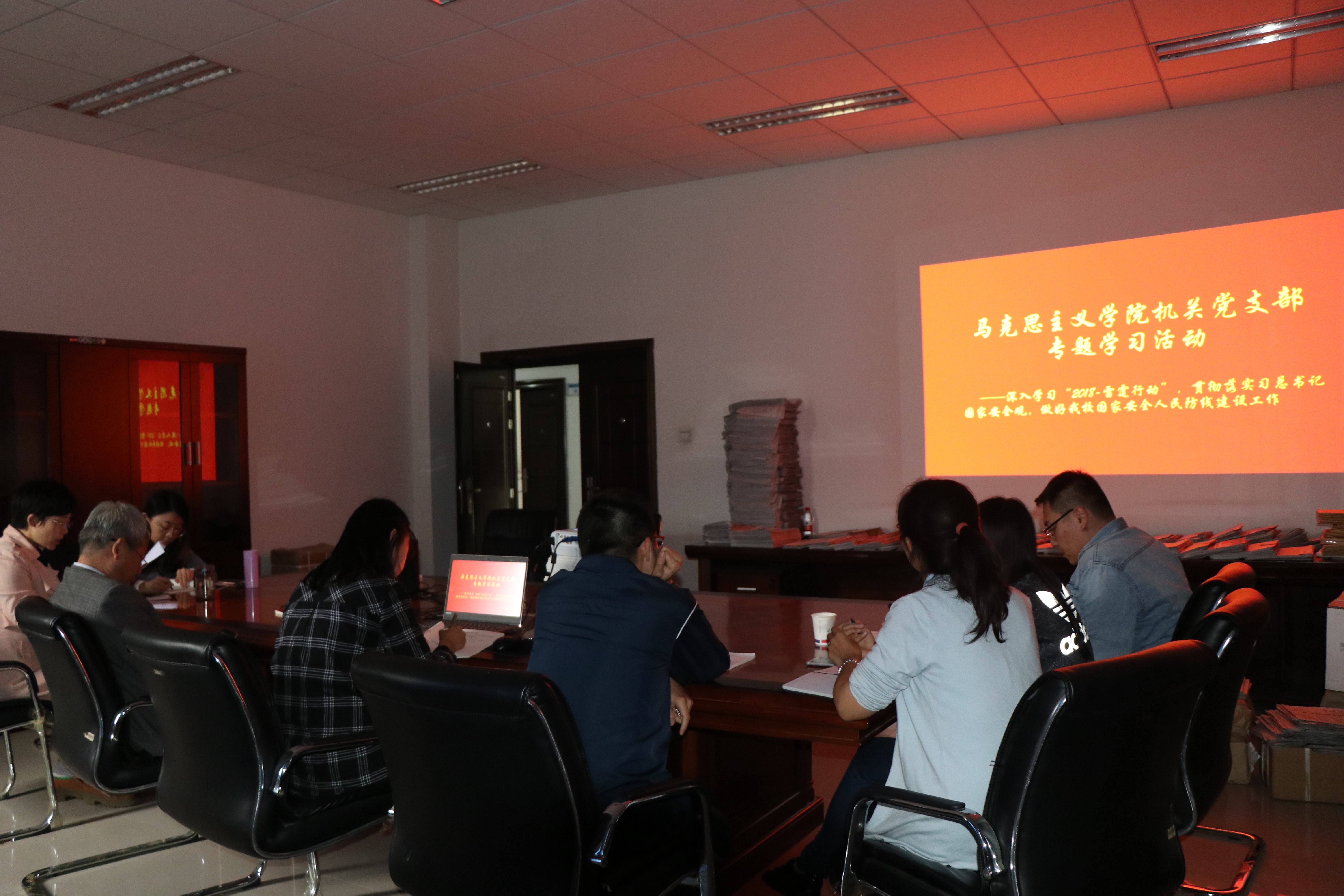 国家安全人民防线建设工作,2018年9月19日下午三点,马院机关党支部组织全体党员在学院楼209观看学习“2018-雷霆行动”专题视频。