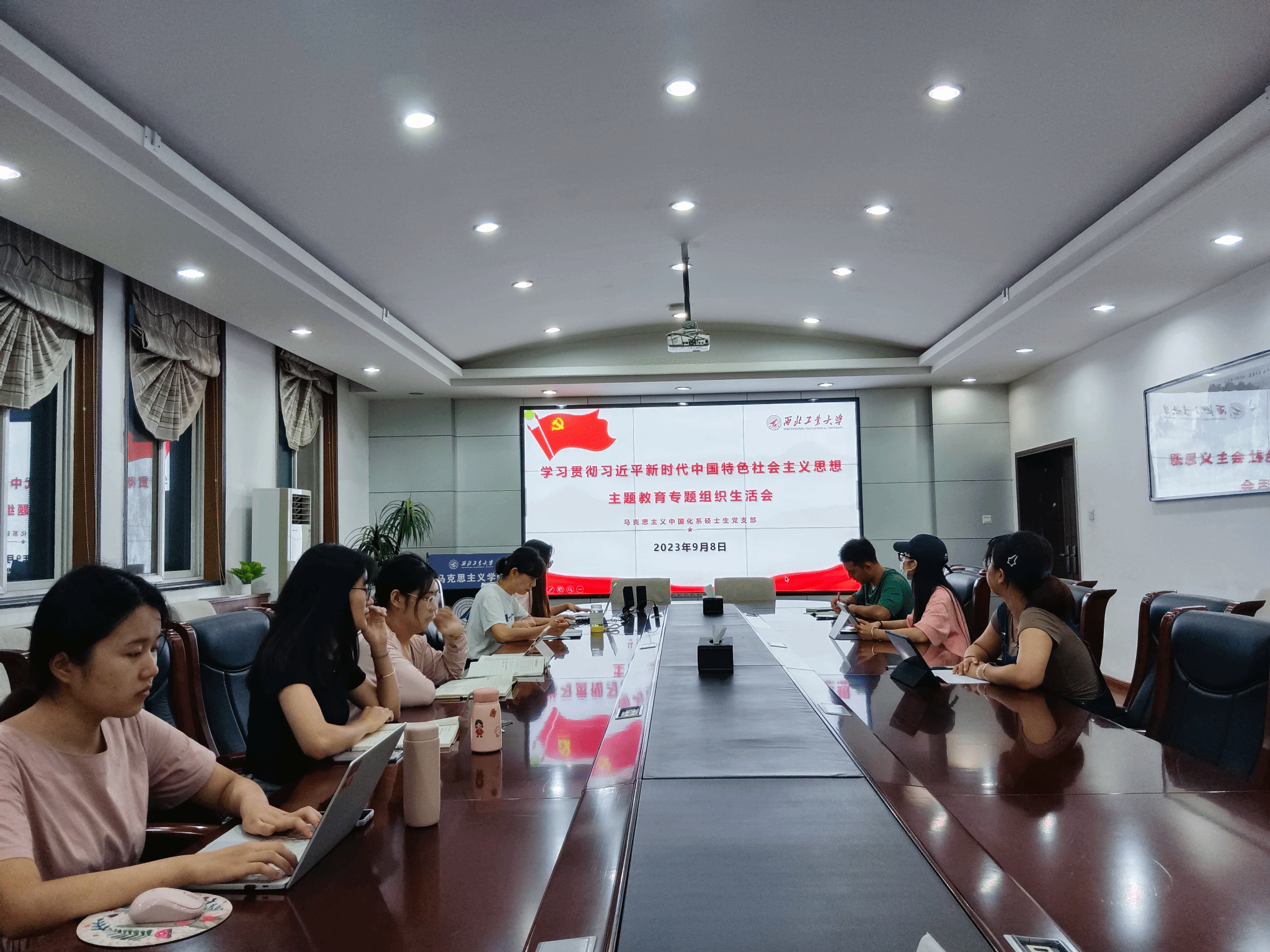 接着,党支部书记张肖丽同志对自2023年4月以来本支部的主题教育开展情况作出总结汇报。她从主题党日、“三会一课”、现场教育等主题教育实践出发,指出积极推动支部成员参与红色美育活动,将理论与实践相结合,积极组织支部党员参与党员学生专项社会实践,是马克思主义中国化研究系硕士生党支部的特色经验。除此之外,张肖丽同志对本支部开展主题教育存在的不足之处进行剖析,并提出了下一步改进计划,明确了本支部深入开展主题教育的思路和行动。