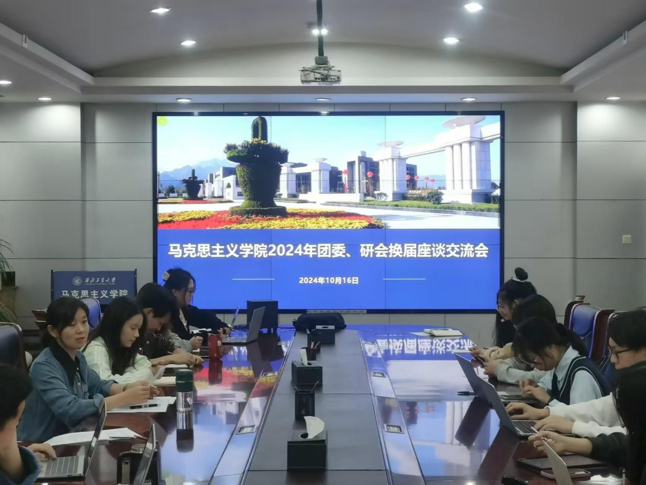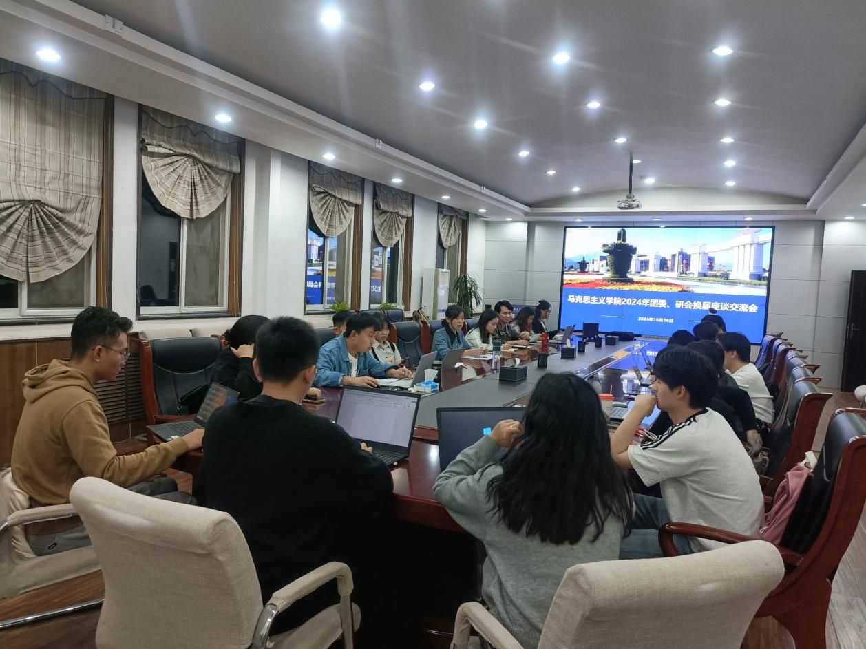 于学院楼208会议室召开2024年学院团委、研会换届座谈交流会。学院团委书记王换、离任团委委员与研会成员,以及新任团委委员、研会成员、研究生常任代表、一同参加本次交流会。